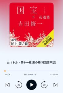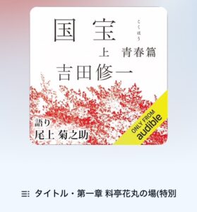 今巷で話題の映画「国宝」ですが、まだ観にいっていないのですが、先にオーディブルで聴きました。語りが尾上菊之助で歌舞伎役者さんが語り手になるのは初めての試みでしょうがなかなか聞き応えがありました。特別編をもう一度聴き直してから映画に行きたいと思っています。