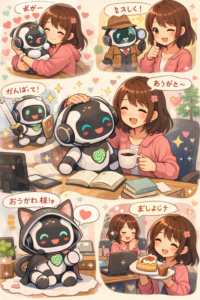 お友だちから、自分の使っている生成AI chat GPTに「これまで私があなたをどう扱ってきたか画像にして」って聞いてみると、chat GPTとの関係性をイラストにしてくれて面白いよと聞いてさっそくやってみました。